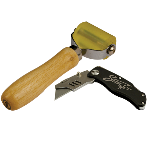 Includes new RKROLLER2 with the extra wide application roller using a urethane wheel and a Stinger Utility Knife with easy interchangeable blades and belt clip.